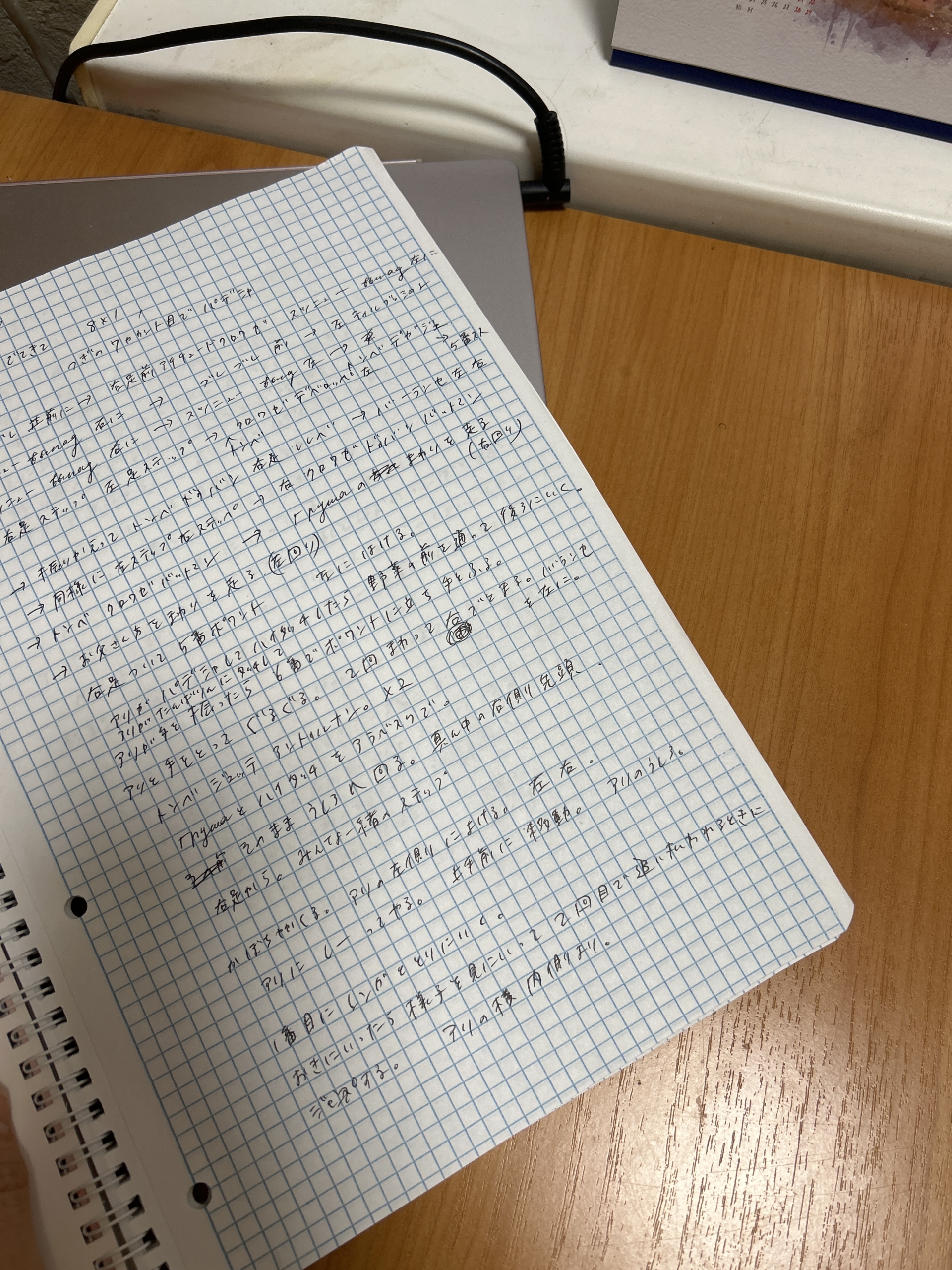 ただ、時間が限られている緊急の状況では、全ての振り付け、カウント、ストーリー、動線をノートに書き出します。これは後で見返すためというより、書き出すことで記憶がより正確になるためです。